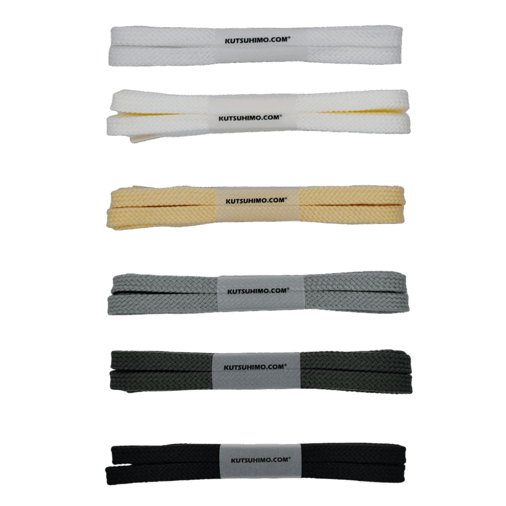 各有名メーカーでも使用される定番シューレース。基本的に柄無し。